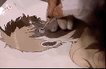 Studio footage depicting Akira’s painting and colouring process. The film used an unprecedented palette of 327 colours, due to so many scenes being set at night.